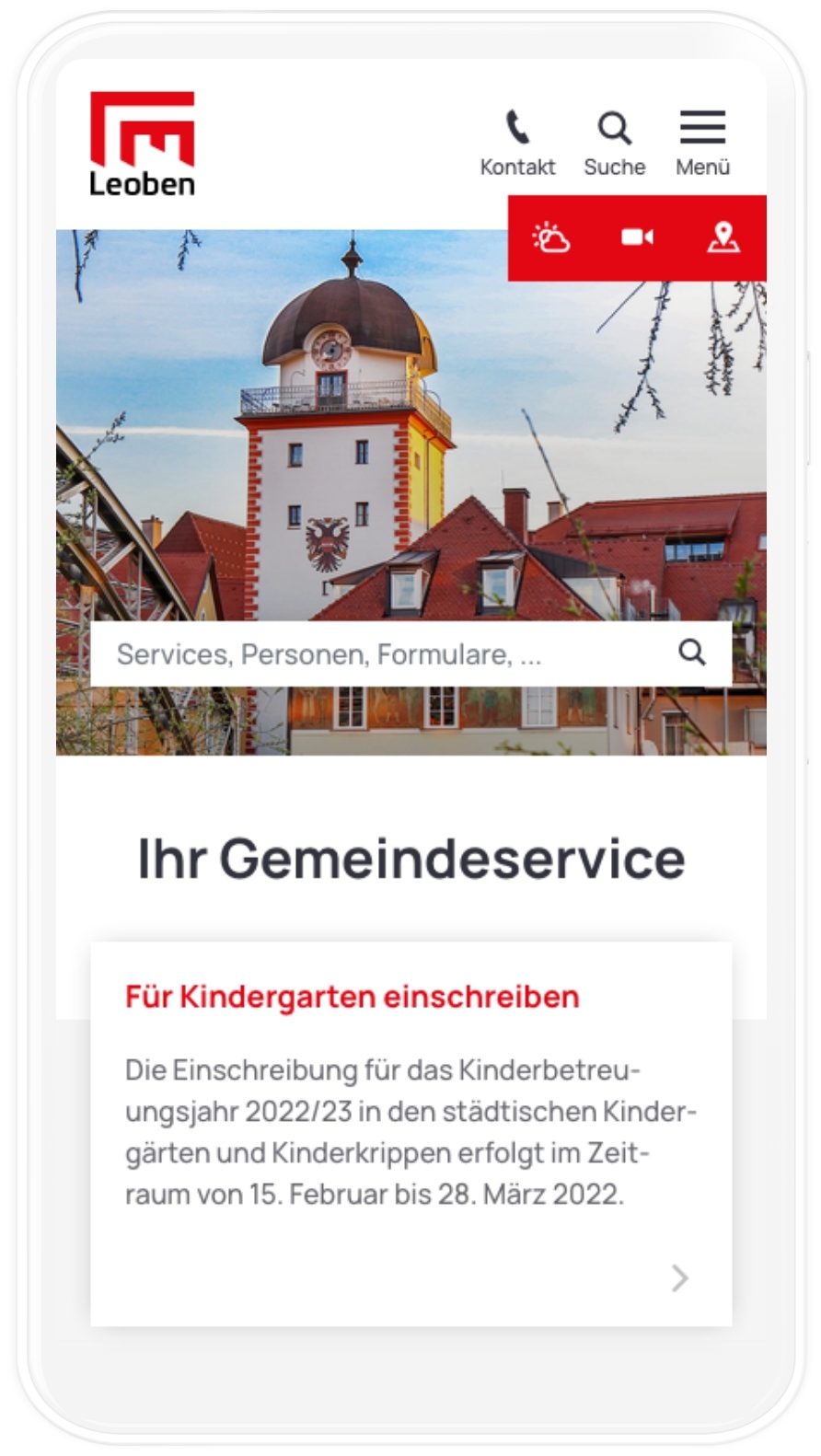 The web services of the city of Leoben, such as leoben.at, lust-auf-leoben.at and wohnen.leoben.at, are the primary contact points for inhabitants and entrepreneurs from the region. Under the motto “City of Short Distances”, the portals offer target group-specific, easy-to-find information and services from the city administration.